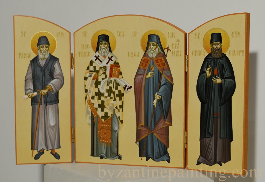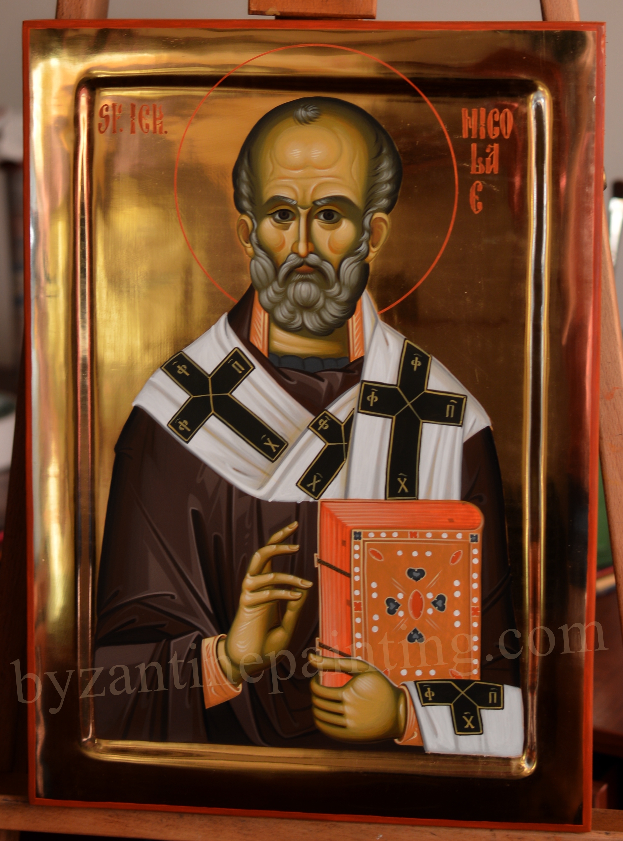 - Icons painted on wood panel in the traditional painting technique. The support is made from limewood specially prepared for painting, with coffer and slats, covered with canvas and primer (chalk powder+animal clay+plasticizer) and gilded with gold leaf (22-24kt).