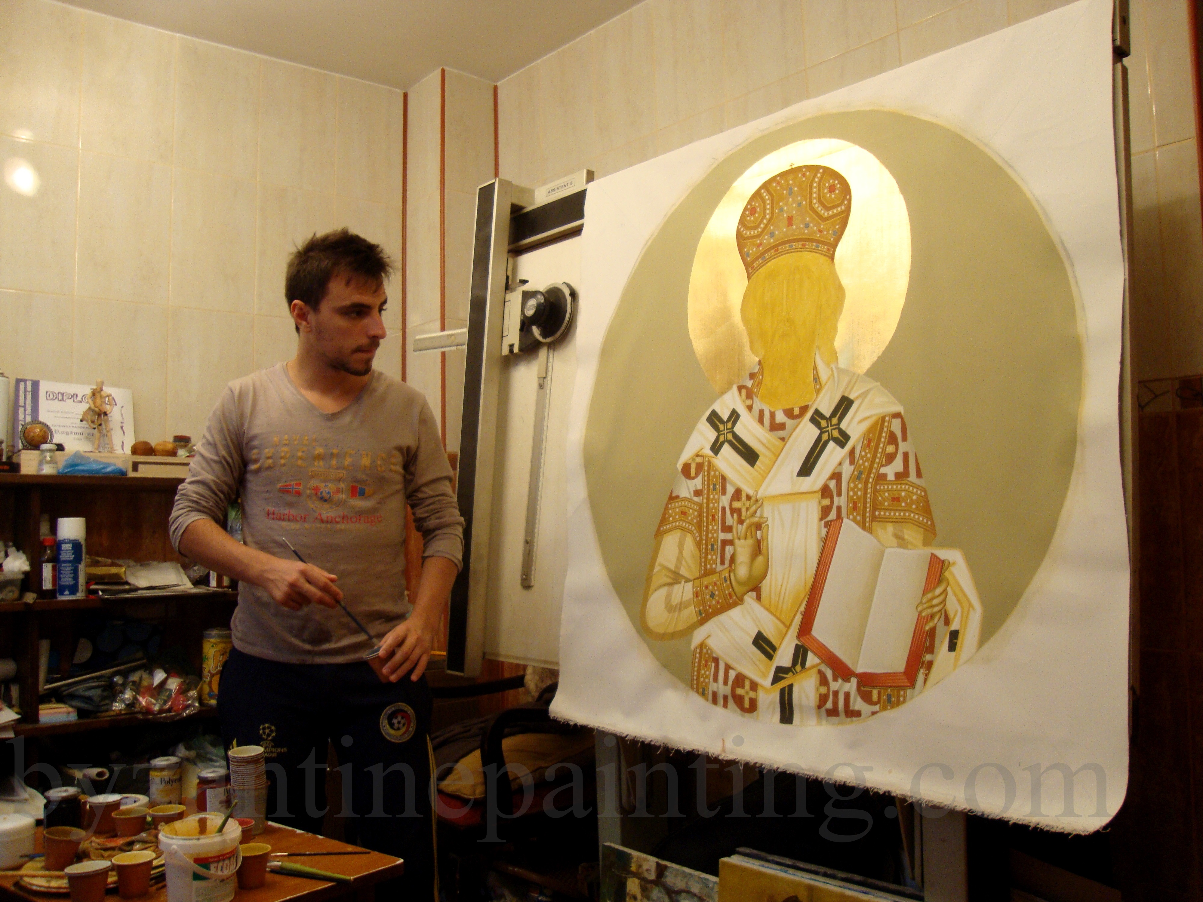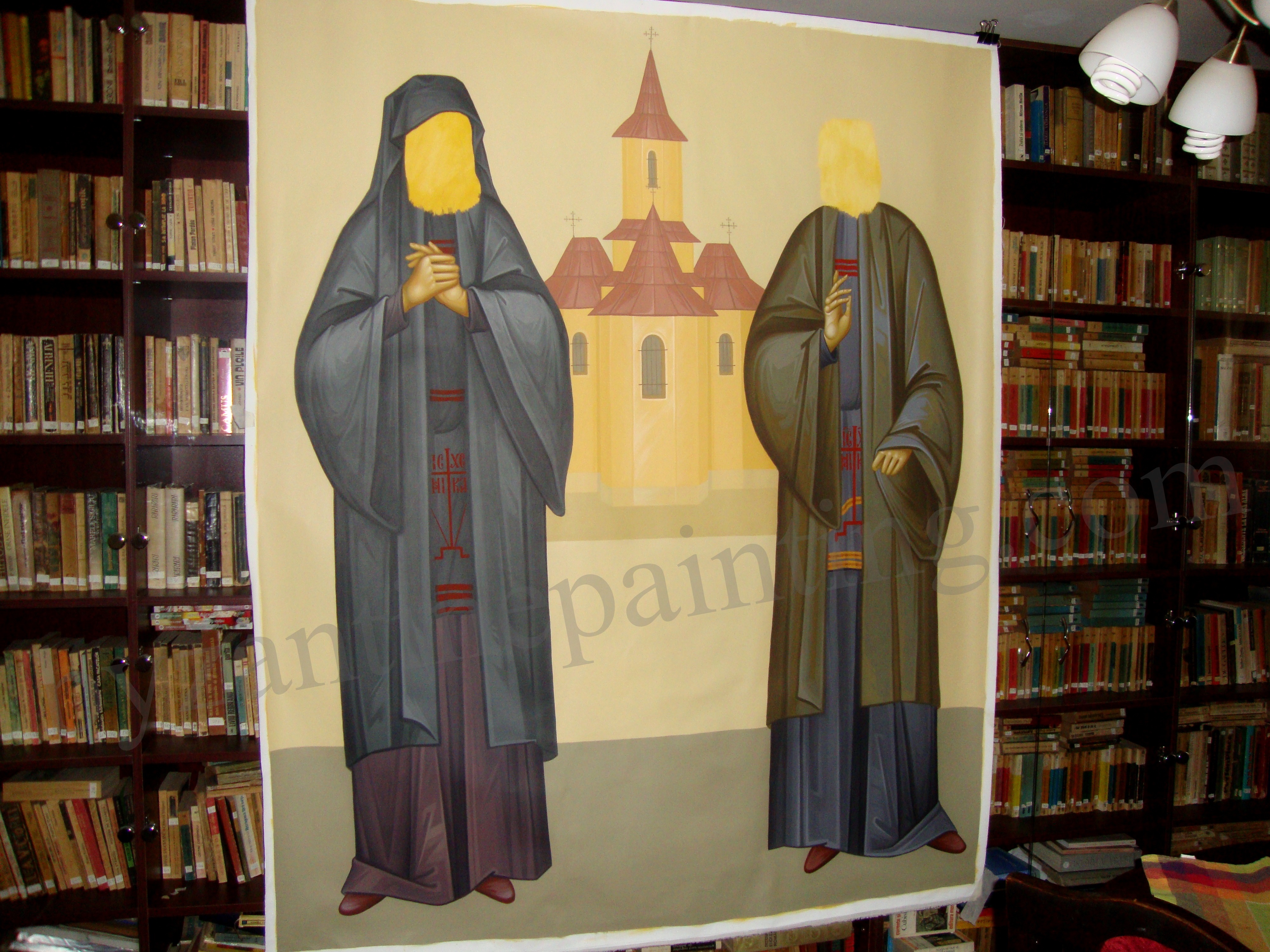 Along with the well known and often used church painting techniques in our country, al secco and al fresco, there is also a technique of painting on canvas which is then glued to the wall. This technique is old, known in the Christian world, where it was used for church buildings which didn’t allow the paintings done in other techniques because of the construction materials used. Recently, we’ve come back to this technique, now widely used in Greece, but also in other countries.