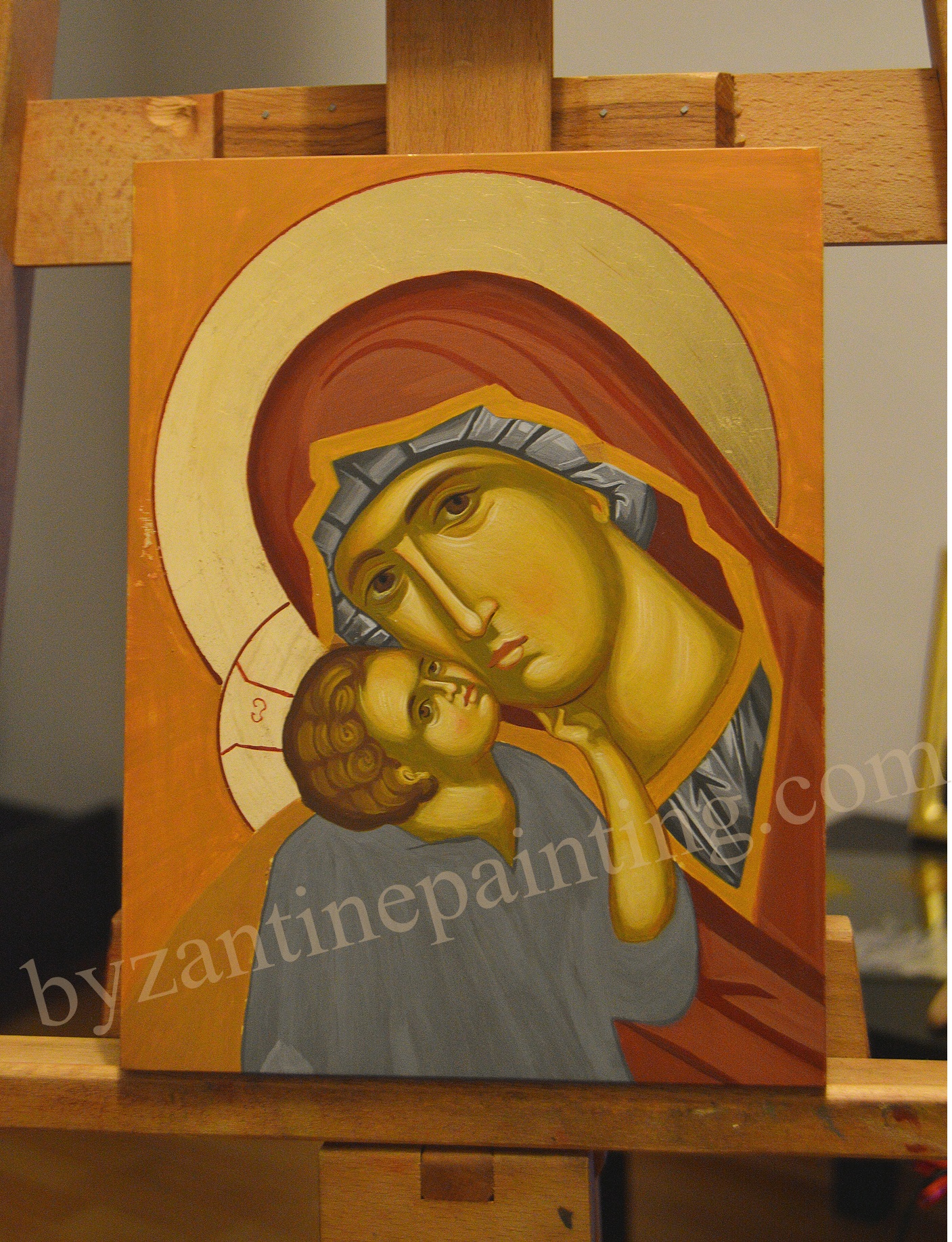 - The painting class includes: 1. basic theoretical notions about icons, their symbolism and the painting technique. 2. practice: a) choosing the model and executing the drawing/transfer; b) preparing the panel for gilding; c) gilding with gold leaf; d) applying the pictorial layer – proplasma for the garments – the drawing – applying the highlights on the garments in overlapped tones – the writing. The portrait: application of – proplasma, -semicarnation, – carnation, – ruddiness, – accents; e) varnishing. The icons will follow the byzantine painting hermeneia and will be painted in the traditional technique with tempera and egg emulsion.