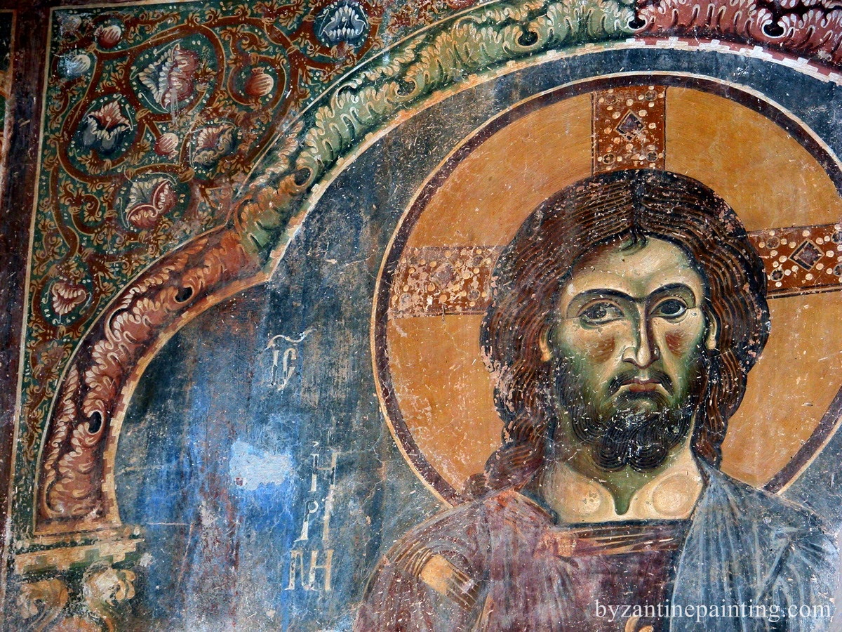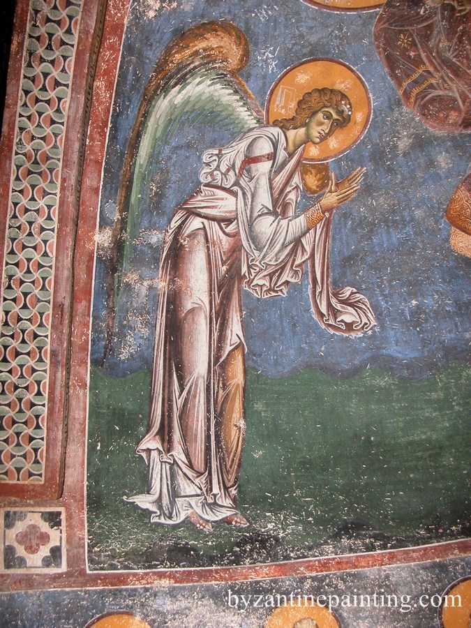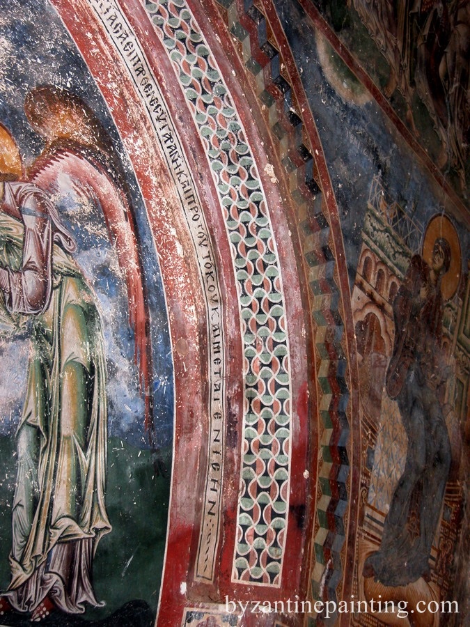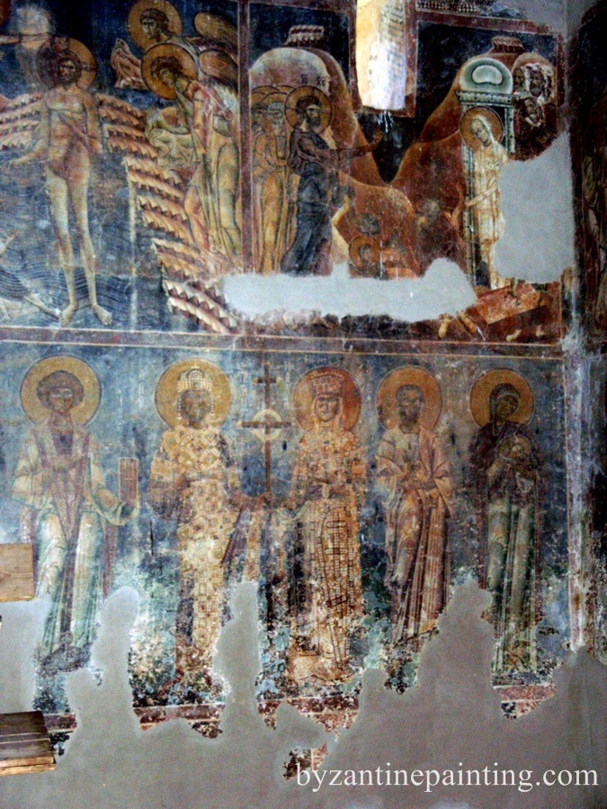 Frescele din biserica Sfantul Gheorghe de la Kurbinovo, pe lacul Prespa, datate de o inscriptie in 1191, ne infatiseaza figuri lungi si subtiri peste masura, cu miscari a caror vioiciune atinge bruschetea, cu drapari clocotitoare si framantate care isi iau zborul in lungi arabescuri pentru a mobila golurile fondului.