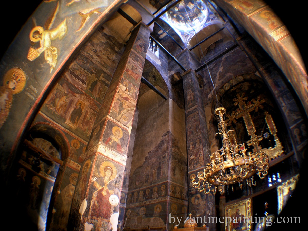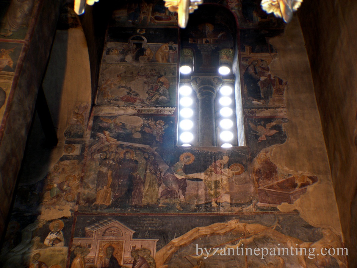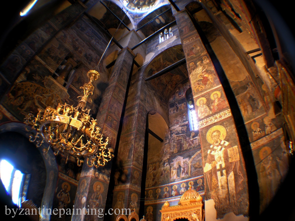 In biserica sunt prezente trei randuri de fresce distincte. Cele mai vechi fresce sunt cele aflate in naos, in timp ce alte doua categorii de fresce pot fi gasite in pronaos. Frescele au fost zugravite intre anii 1321-1322, ele fiind foarte bine pastrate pana astazi.