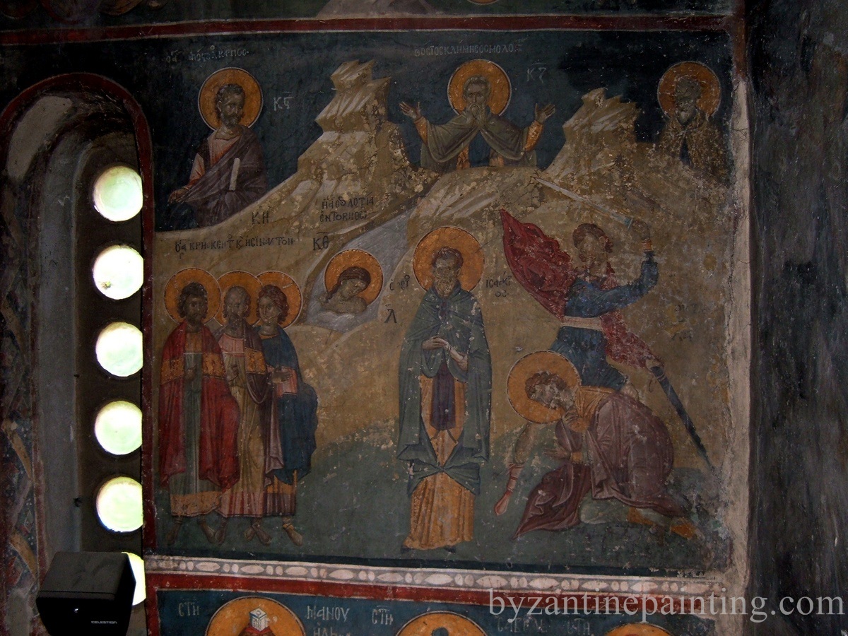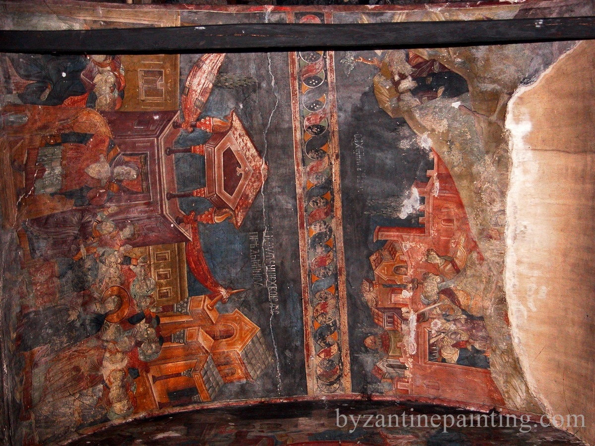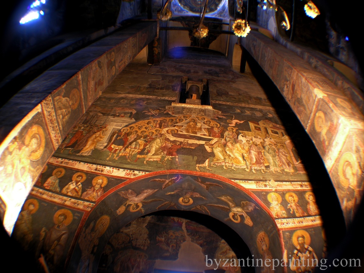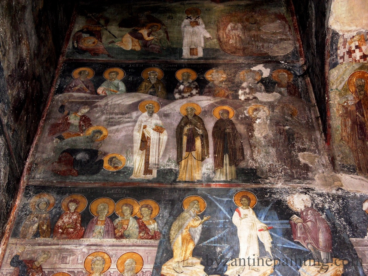 In biserica sunt prezente trei randuri de fresce distincte. Cele mai vechi fresce sunt cele aflate in naos, in timp ce alte doua categorii de fresce pot fi gasite in pronaos. Frescele au fost zugravite intre anii 1321-1322, ele fiind foarte bine pastrate pana astazi.