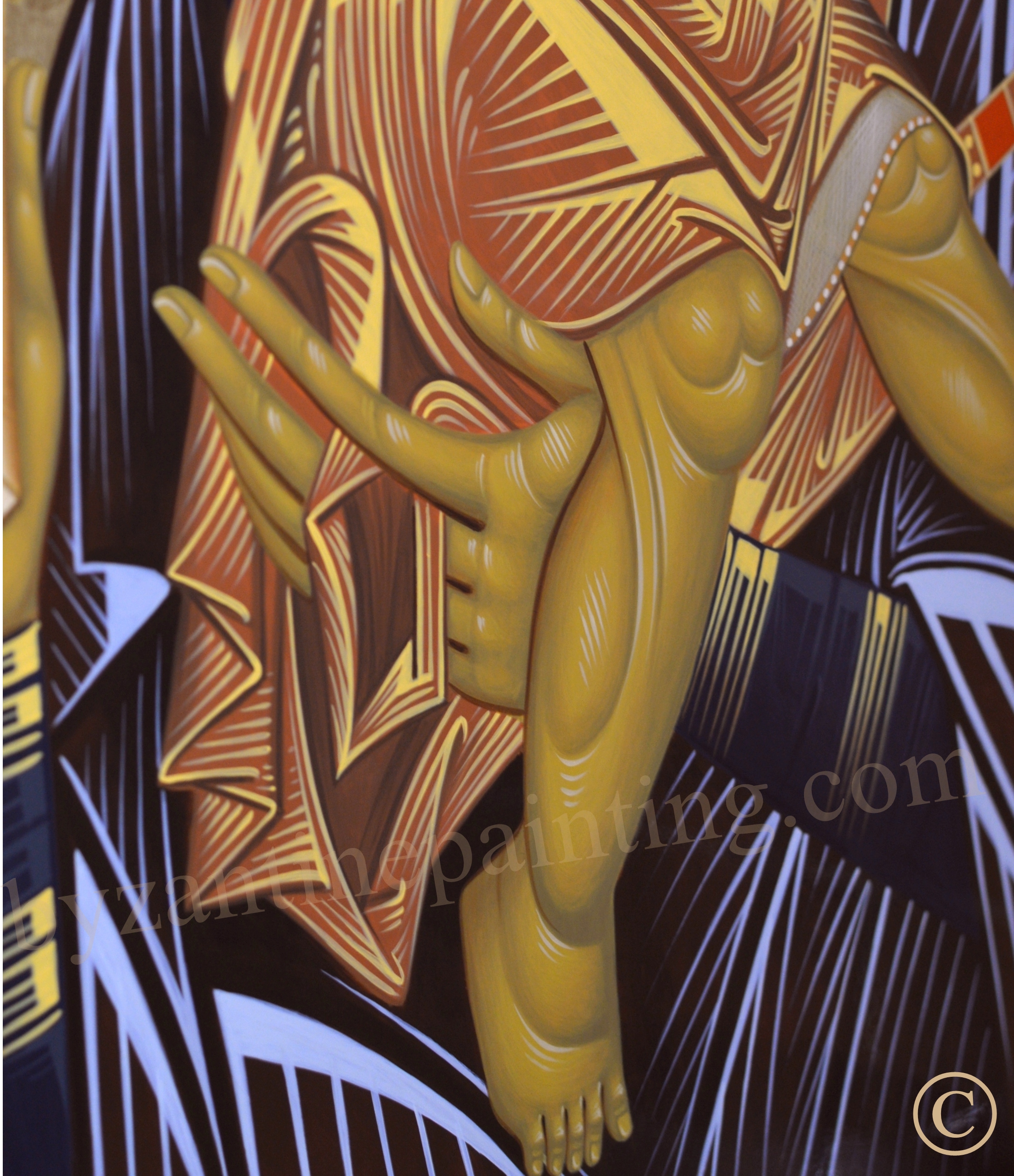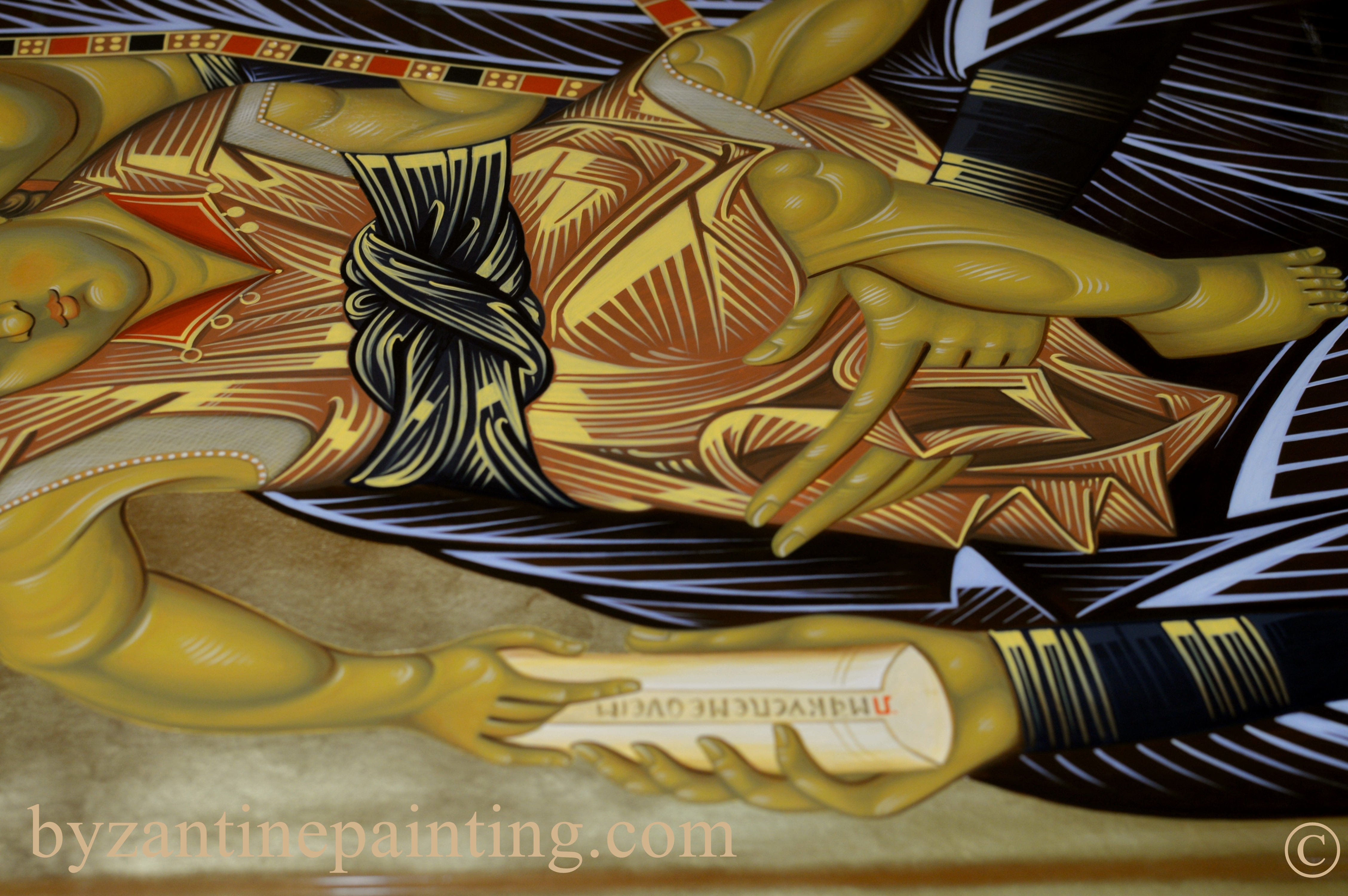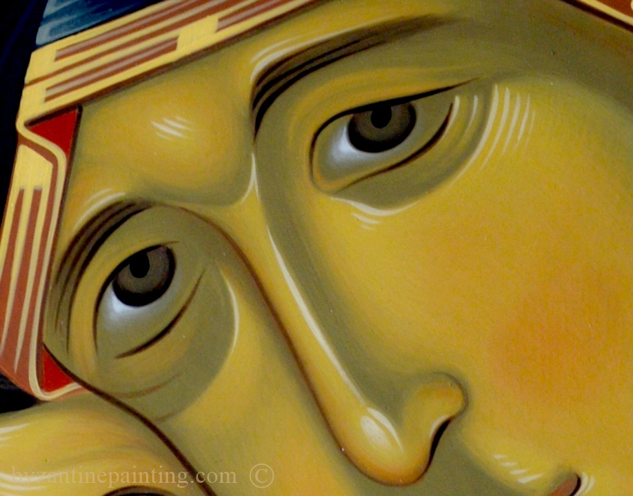 A fost pictata pe lemn de tei special pregatit pentru pictura si poleita cu foita dubla de aur. Dimensiune 90/63 cm