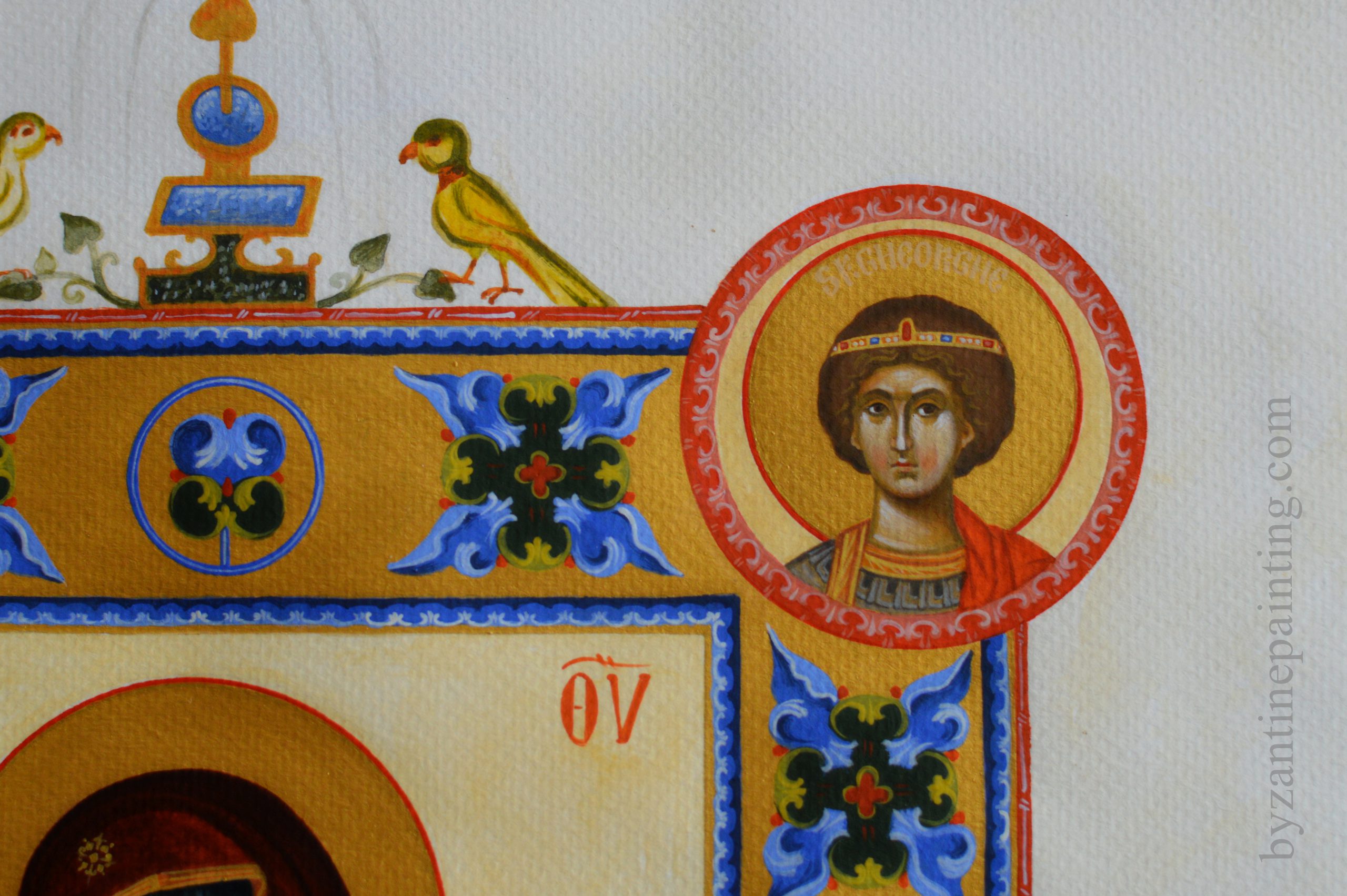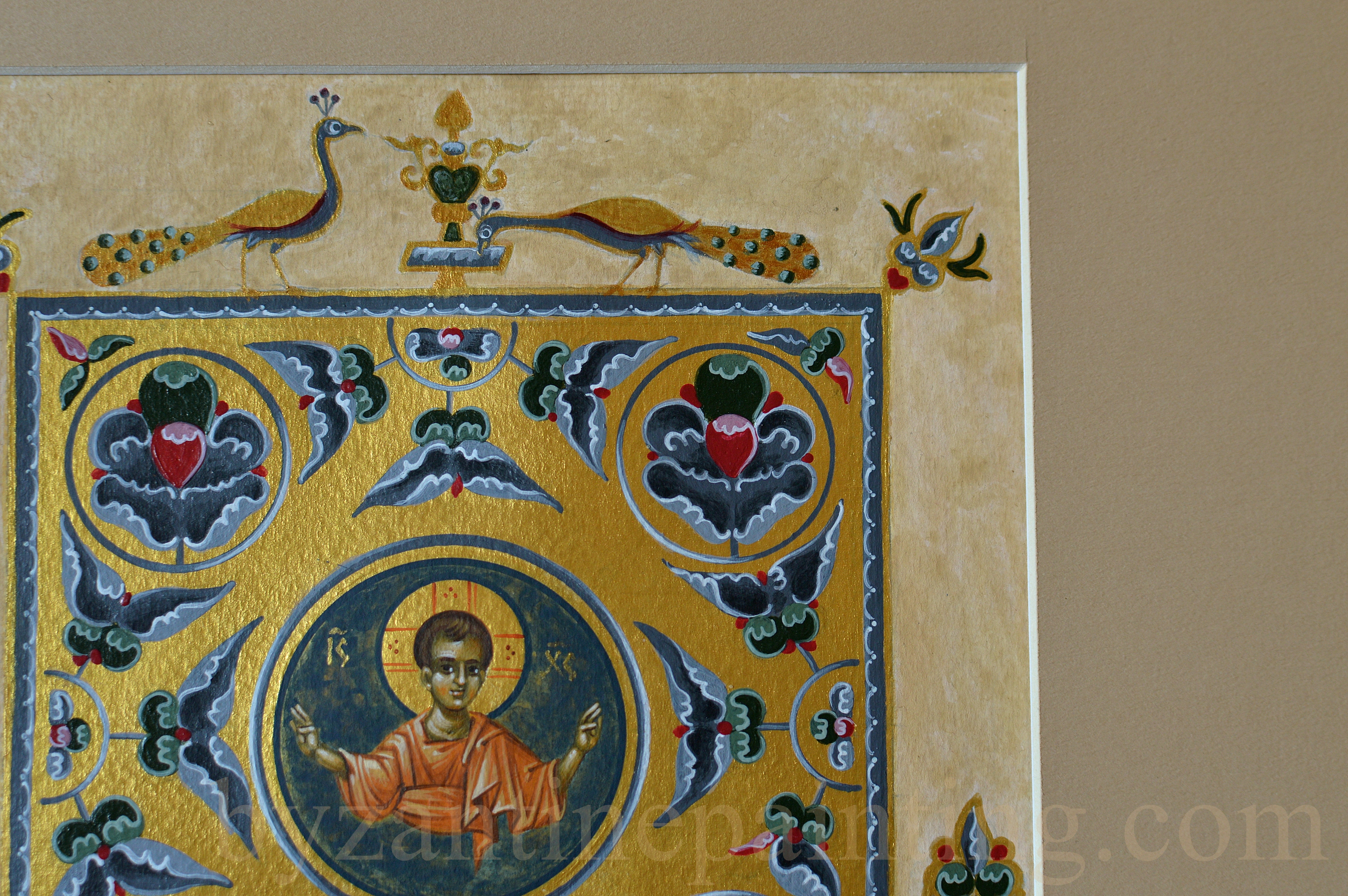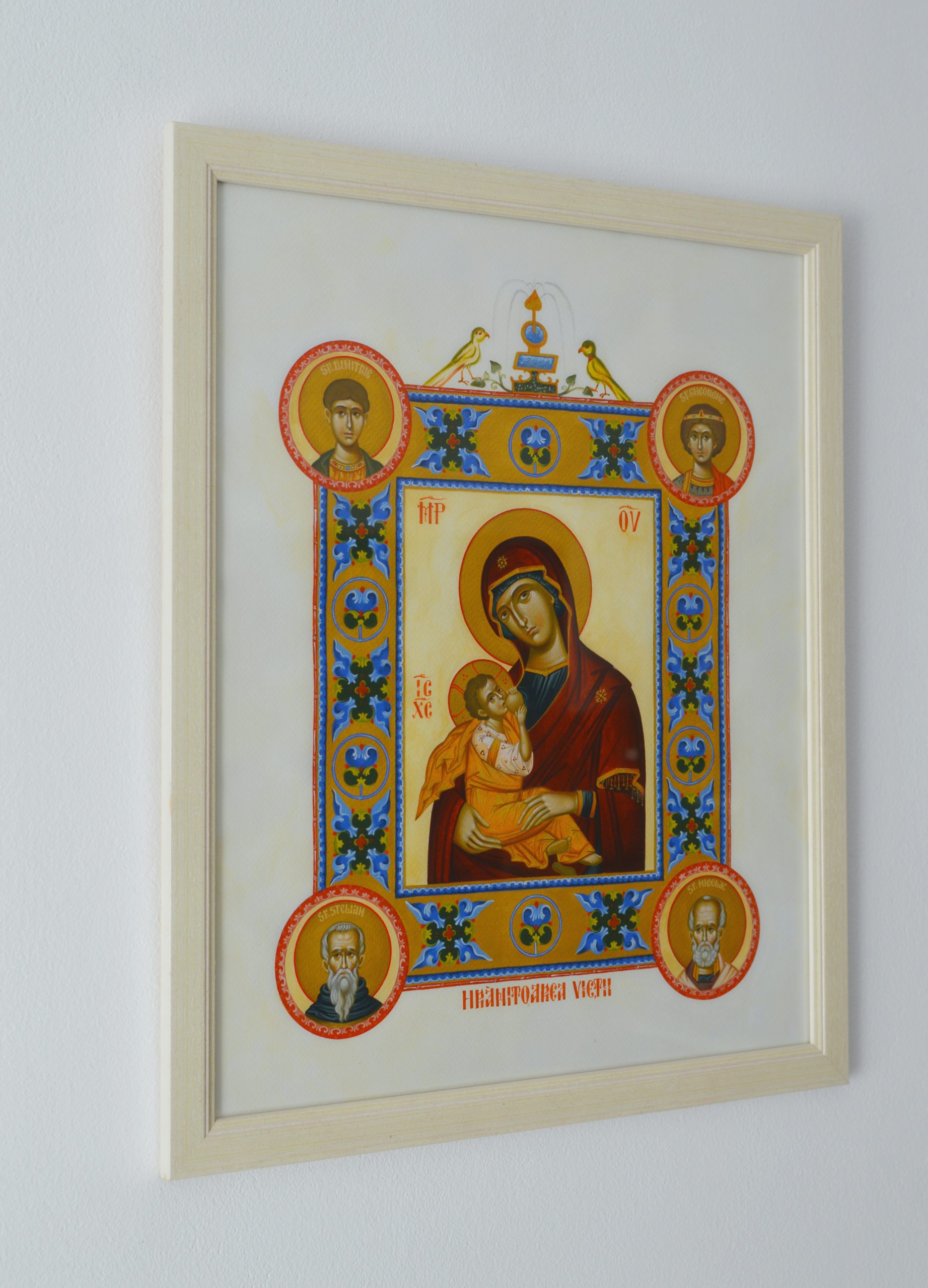 - Miniatura Maica Domnului Hrănitoarea Vieții având reprezentați în medalioane pe Sfinții Mucenici Gheorghe și Dimitrie, Sfântul Cuvios Stelian, Sfântul Ierarh Nicolae
