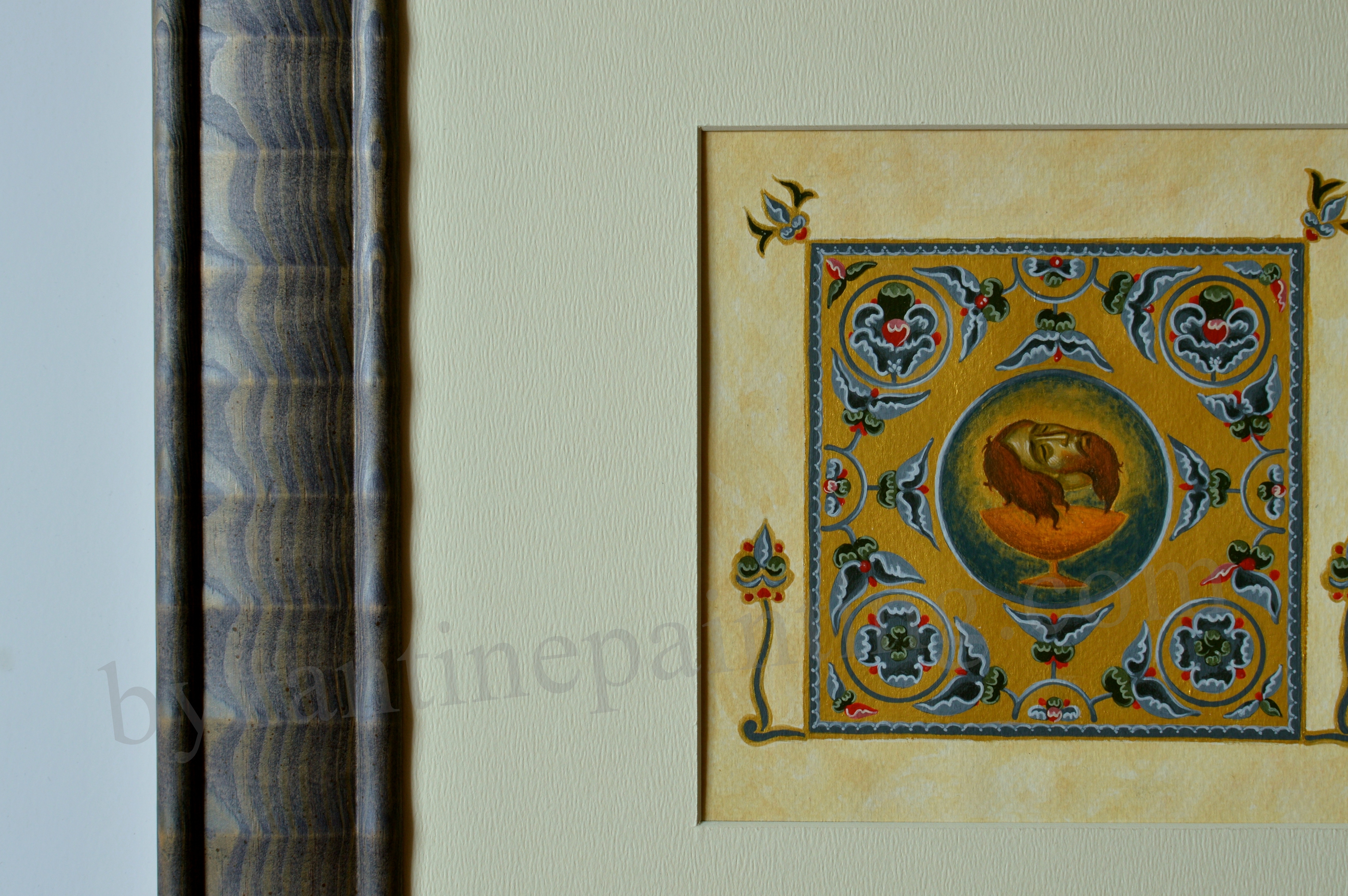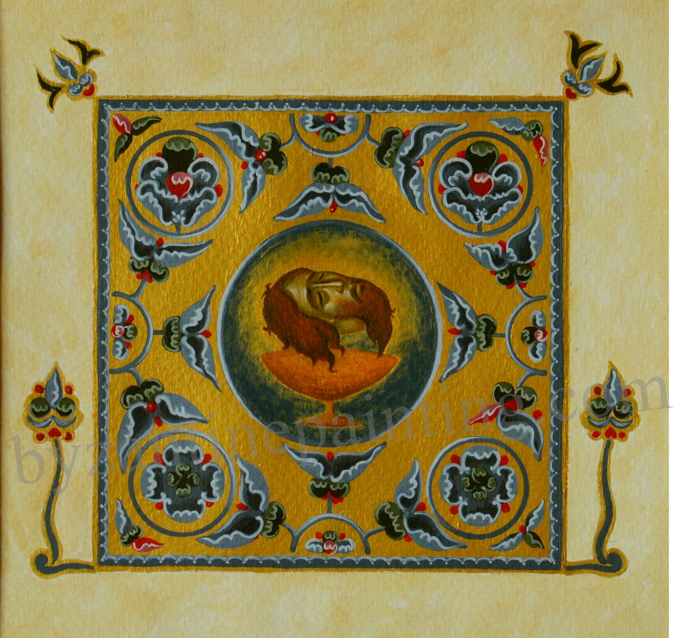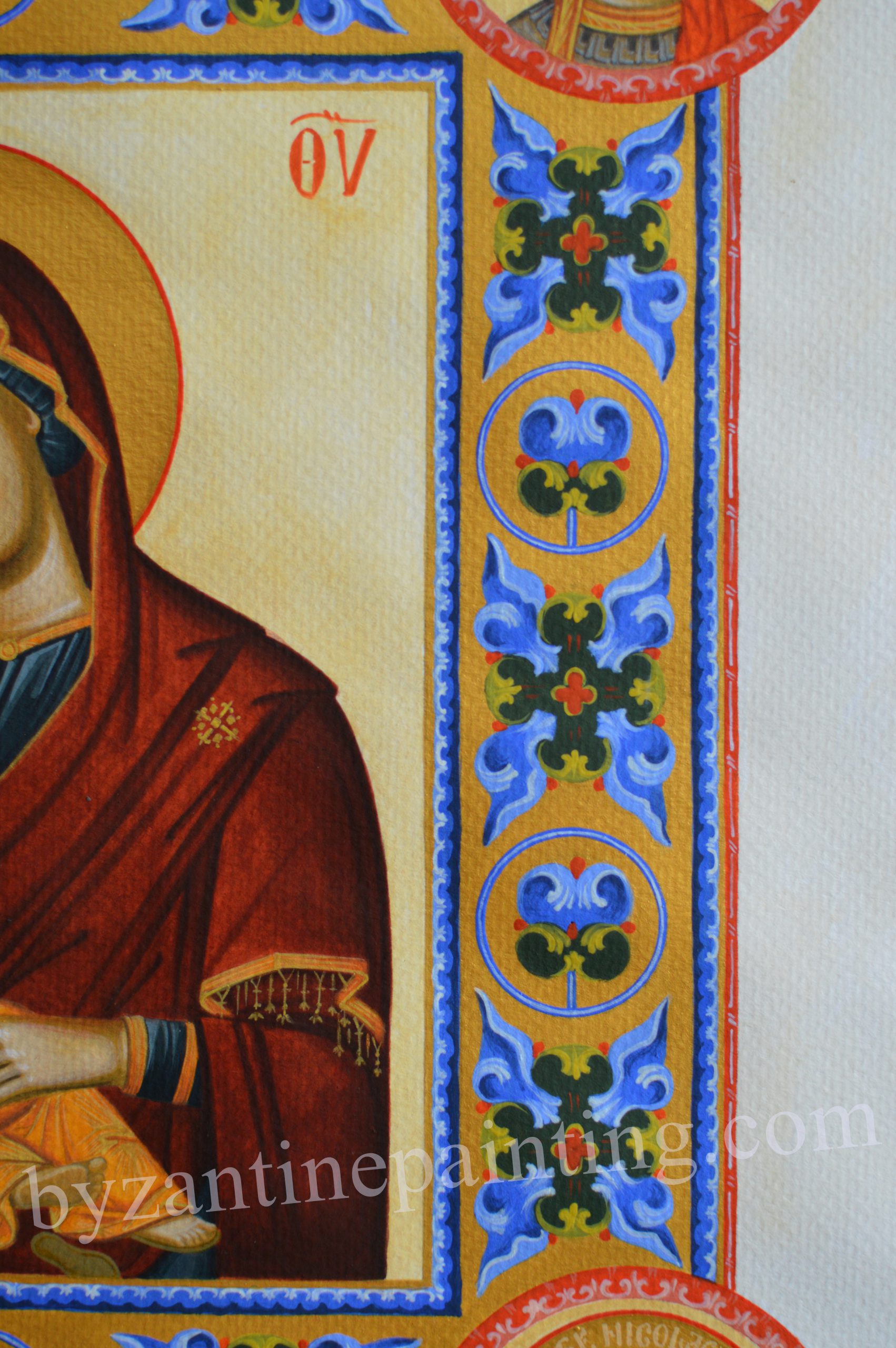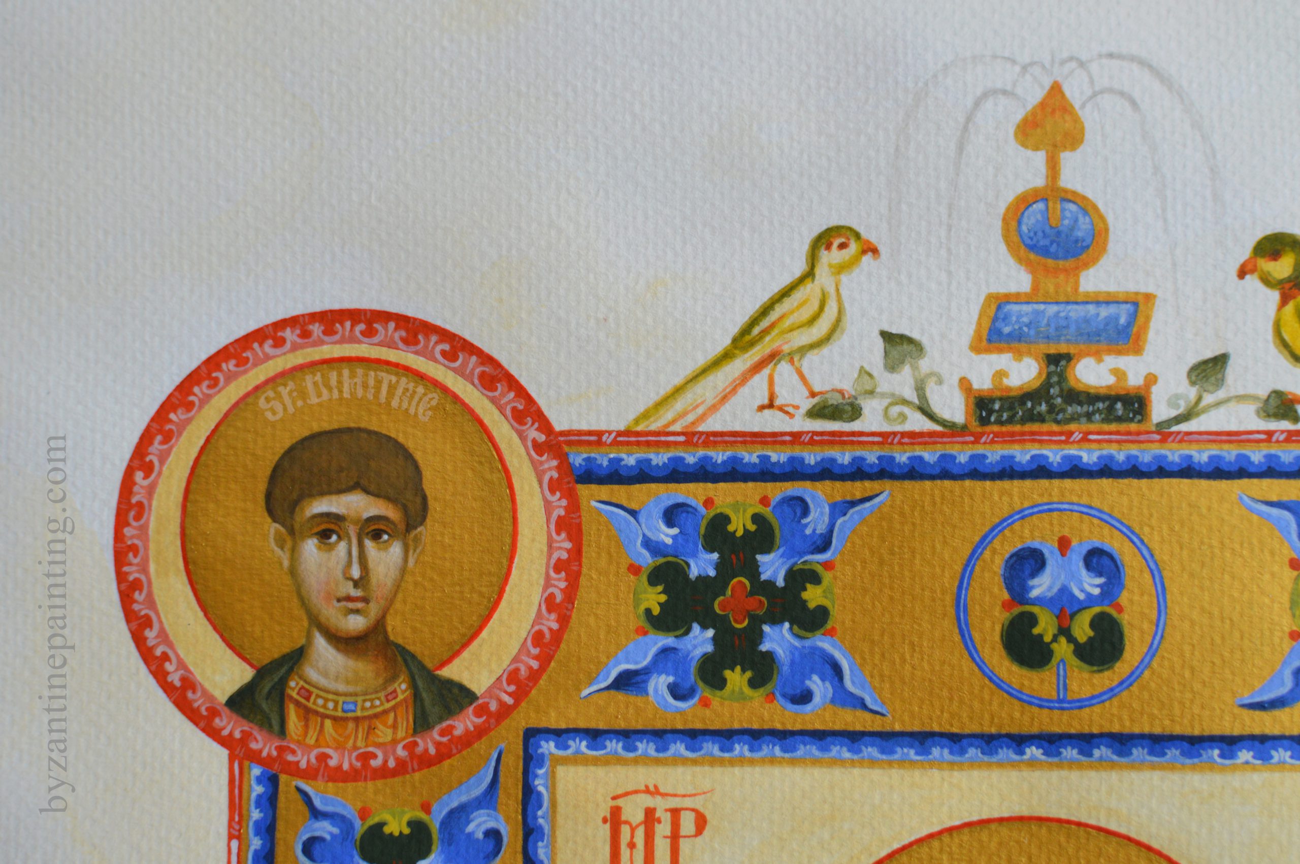 - Miniatura Maica Domnului Hrănitoarea Vieții având reprezentați în medalioane pe Sfinții Mucenici Gheorghe și Dimitrie, Sfântul Cuvios Stelian, Sfântul Ierarh Nicolae